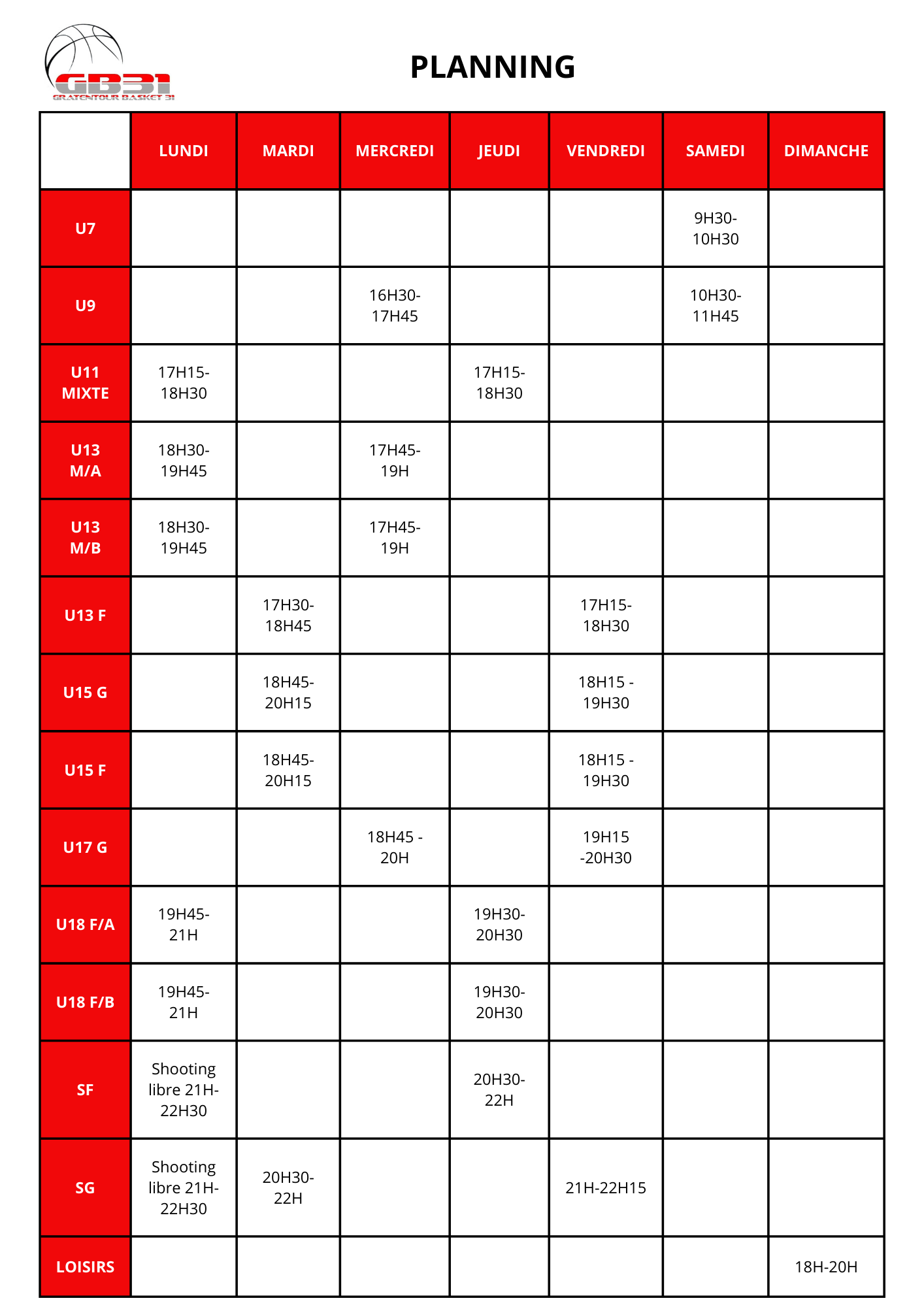 Télécharger l'image pngHoraires d'entrainements pour chacune des équipes du club
